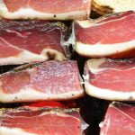 The meat course in Trento consists primarily of proteins such as pork and lamb. Tripe, the edible lining of cattle and sheep stomach, is also common. Keeping in line with Alpine cuisine, meat is most often served in hearty stews or braised alongside locally grown vegetables. Meats such as speck and bratwurst are also served. Often dark German bread is served with this course, helping to accent the richness of the meal.